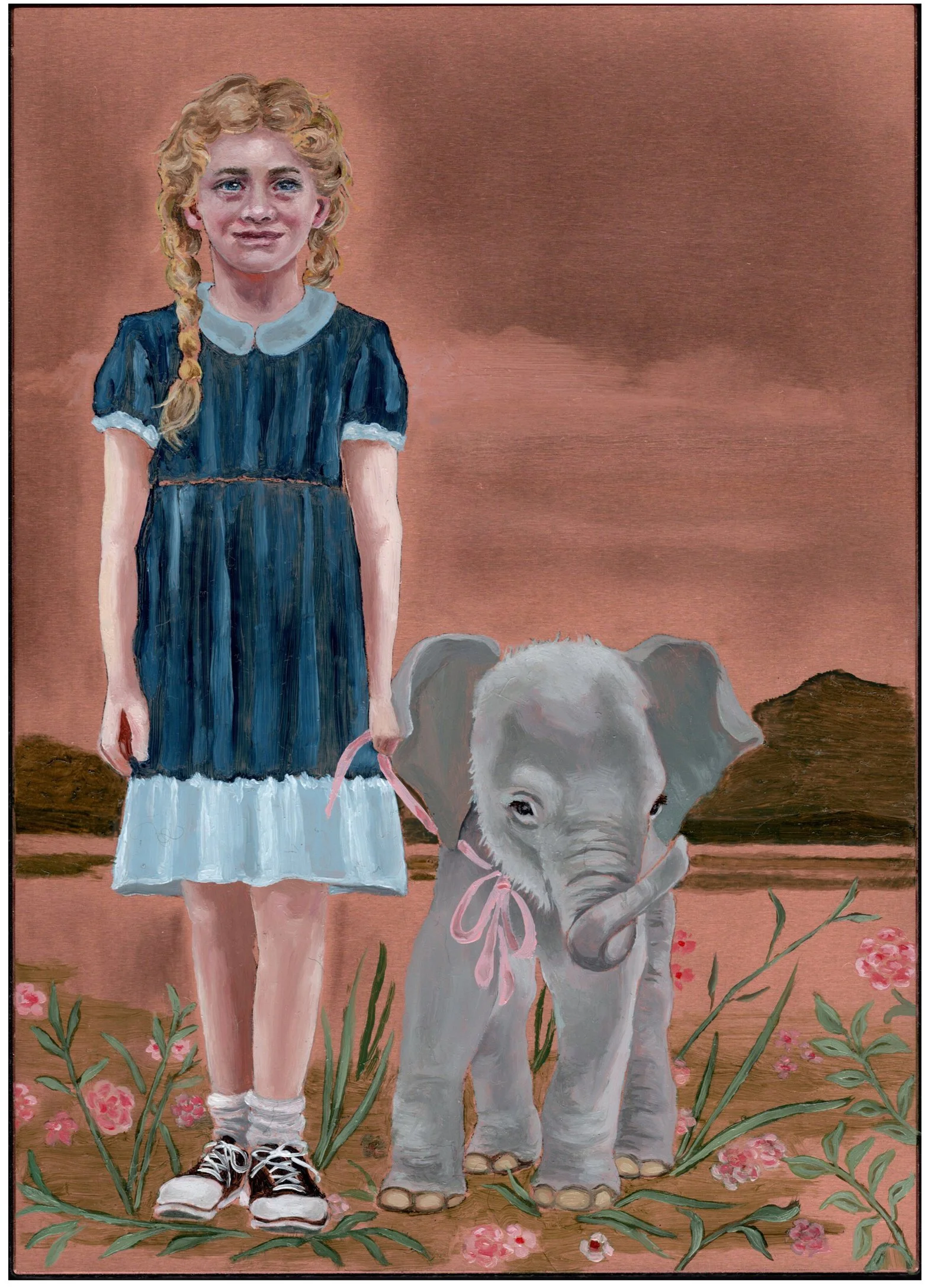 I painted this portrait of Inge Bannemann on a sheet of copper. I am fascinated by the many ways in which this metal can be altered and textured through oxidation and patination. The dimensionality of the altered surface gives a sense of the passage of time.